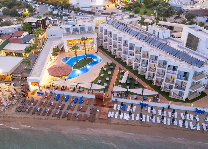 Mimoza Beach Hotel Agios Sergios, som ligger inom 5 minuters gångavstånd från Salamis Bay Conti Aqua Park, har en utomhuspool. Det här eleganta hotellet erbjuder 41 rum och bekvämligheter som ett privat strandområde och restaurang.